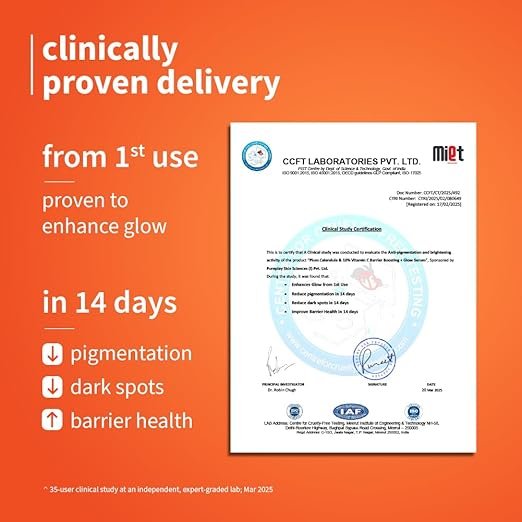 Elevate your skincare routine with Plum 10% Vitamin C & Calendula Barrier Boosting + Glow Serum, a potent yet gentle daily treatment designed to help brighten dull skin, strengthen the moisture barrier, and enhance overall radiance. Featuring 10% vitamin C — a powerful antioxidant — paired with calendula extract, this serum helps support a balanced, glowing complexion while calming and nourishing sensitive skin.